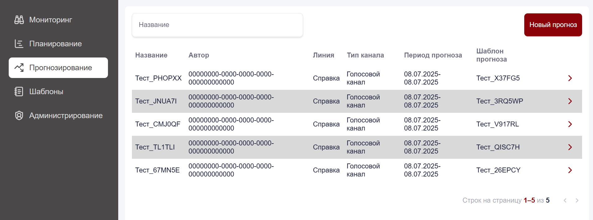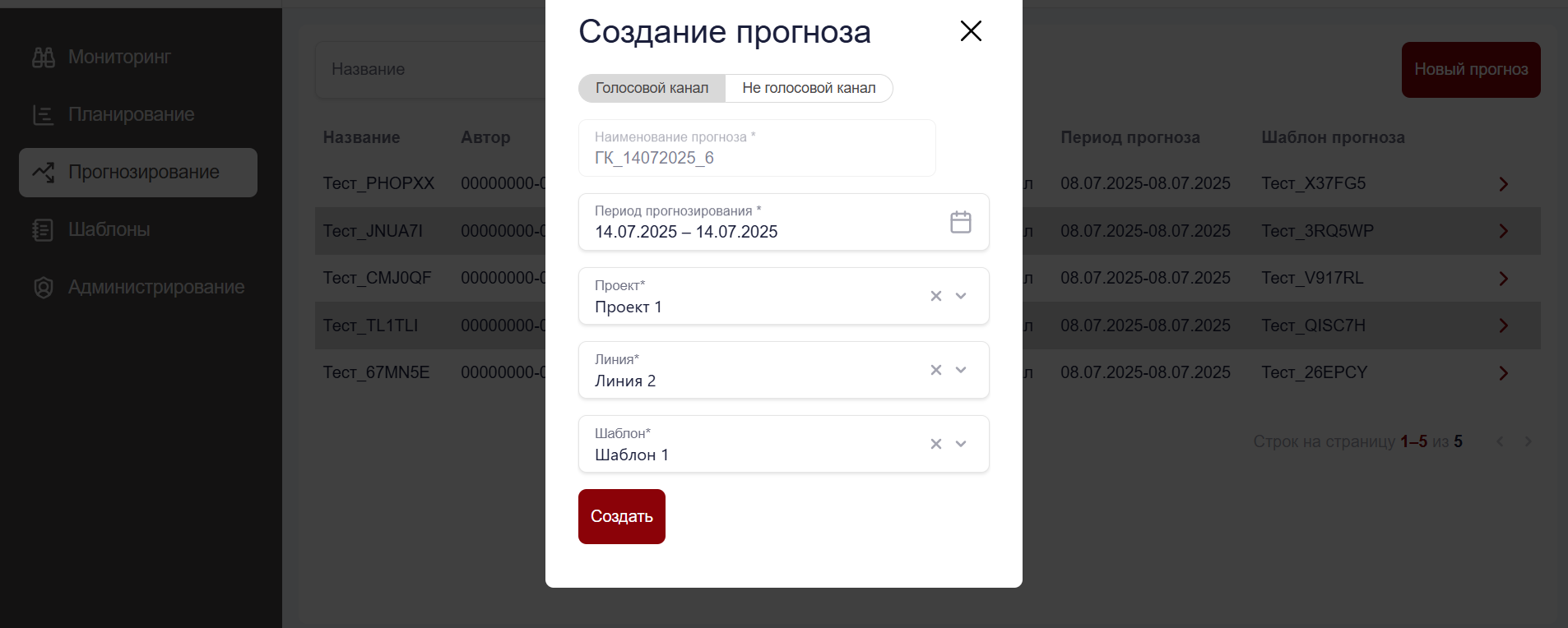 Создание прогноза